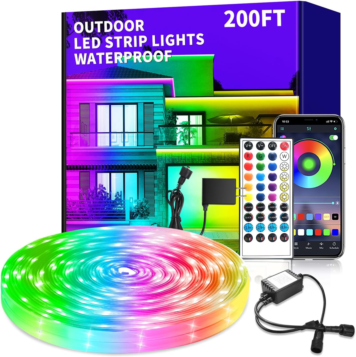 500ft Outdoor LED Strip Lights Waterproof,IP68 Waterproof Led Rope Lights with Remote and App controlled,Music Sync RGB Outdoor Led Strip Lights for Bedroom,Roof,Courtyards(2 rolls of 250ft)