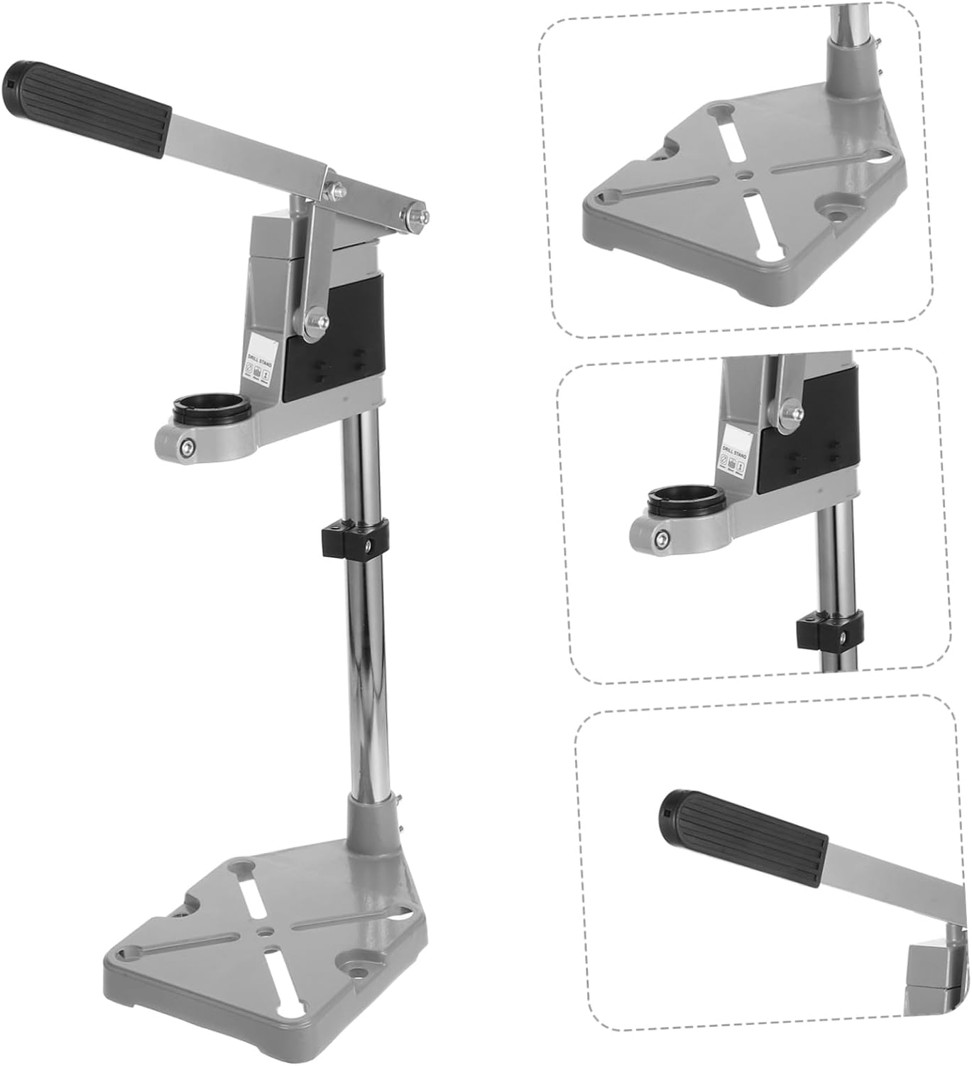 Package Include 1 x drill press stand Features - Material: Iron drill press for hand drill - Size: About 50.00X14.50X14.50cm/19.65X5.70X5.70in portable drill press stand - Color: Silver - Makes your exercises stable during use and allows much more accurate than hand operation drill press stand. - Designed for use with any power drill with collar diameter ranging from 38mm to 43mm hand drill press stand. - Durable metal spindle and steel base, make your operation more stable and efficient hand drill press. - Holding your drill steady during use - allowing for much more accurate drilling than hand-held operation. - The drill press has a sturdy heavy-duty cast iron base to ensure maximum stability and has mounting holes so it can be fixed to a workbench.Goods Informationportable drill press stand Designed for use with any power drill with collar diameter ranging from 38mm to 43mm.hand drill press stand The drill press stand rack is a professional-grade tool, for holding your drill steady during use - allowing for much more accurate drilling than hand-held operation.drill press for hand drill This accessory is great for any DIY-er or professional