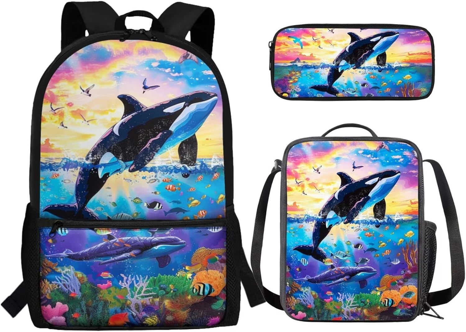 • 🎒Package: 1 Backpack + 1 Lunch Bag + 1 Pencil Case. 3 Piece