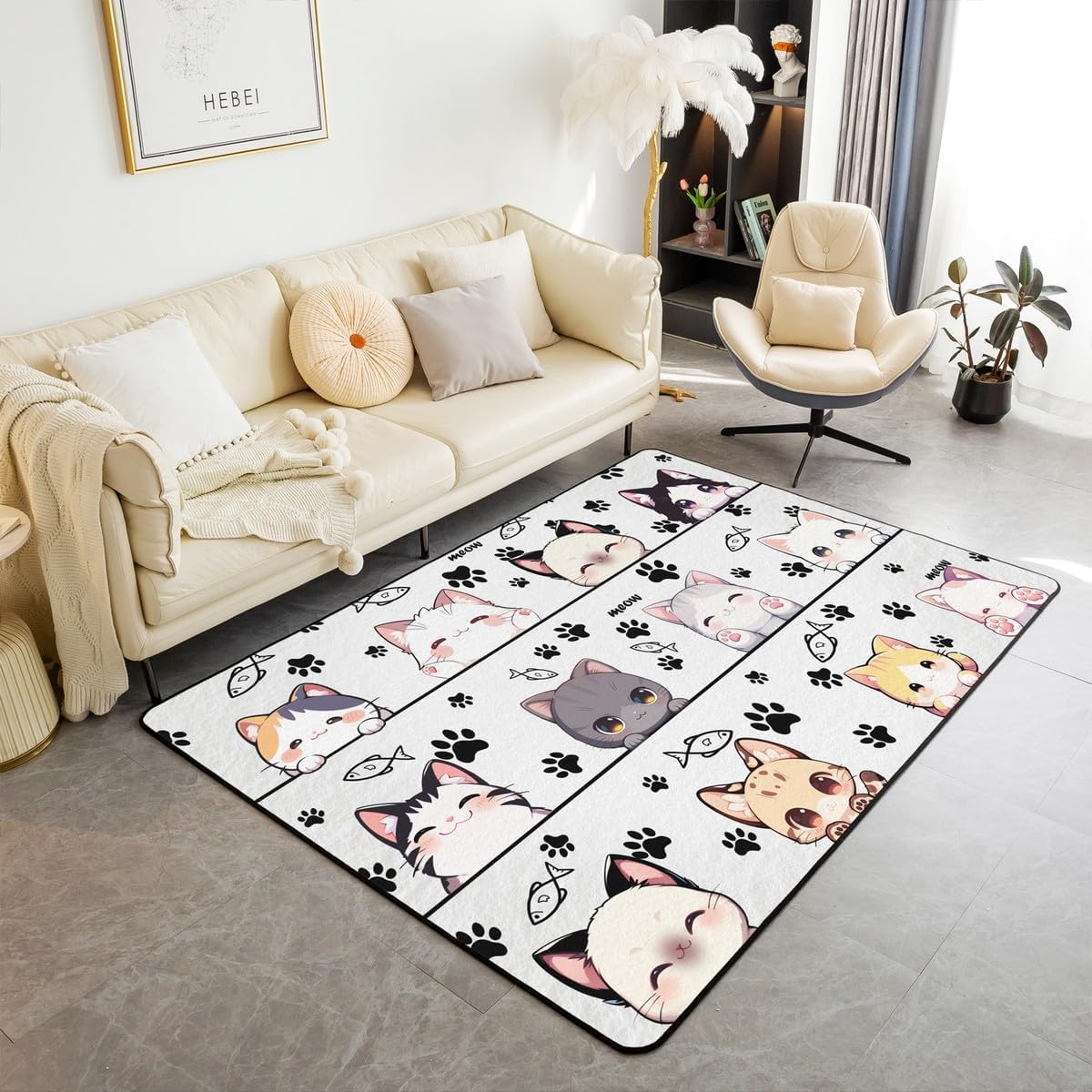 Tips: The carpet will arrive with temporary creases, you can repeat the process several times by rolling the carpet in the opposite direction of the creases and then spreading the carpet flat and pressing the edges of the roll with a heavy object to restore the carpet to its original state. We recommend using an iron to iron carpets at low temperatures more quickly Size: 2 sizes can be chosen of our rugs dimension: 3' x 5' x 0.39'' 100cm x 150cm x 1cm. 5' x 6'6'' x 0.39'' 150cm x 200cm x 1cm. Material: Made with 100% polypropylene. No chemicals used, No dye substance harming the health of you or your family. The rubber non slip design on the bottom of the area rug for bedroom is the safest protection. One piece is enough,you don't need to buy additional non slip carpet pads Machine washable: Soak in cold water for 10 minutes,then folded twice and put into the washing machine on gentle cycle, and then dry in the air.Do not use chlorine or bleach Features: With many different patterns to choose from, you will easily find rugs to coordinate with your decor. Our rug is widely used as the floor rug as well as a play mat, kitchen rug, bedroom rug, laundry mat, living room mat, office rug etc. Notes: Due to the light and screen setting difference, the item's color may be slightly different from the pictures Please allow slight dimension difference due to different manual measurement