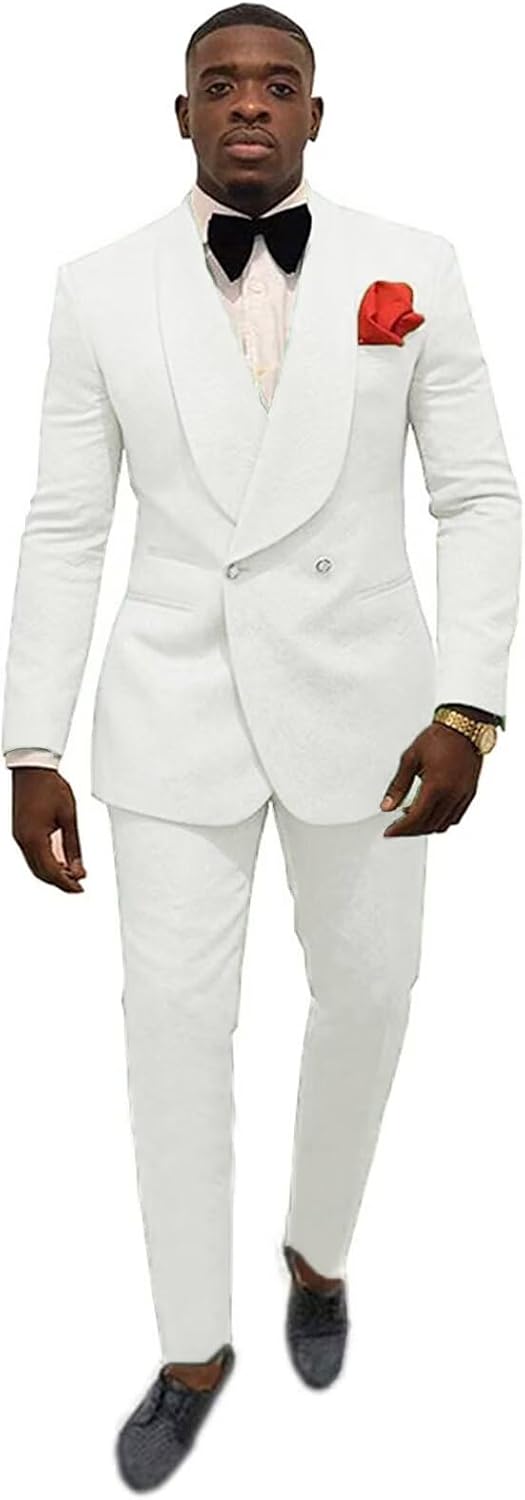 Men's Floral Jacquard Tuxedo Suits Slim Fit 2 Piece Suits Shawl Collar Suit for Men Wedding Groom with Bow Tie