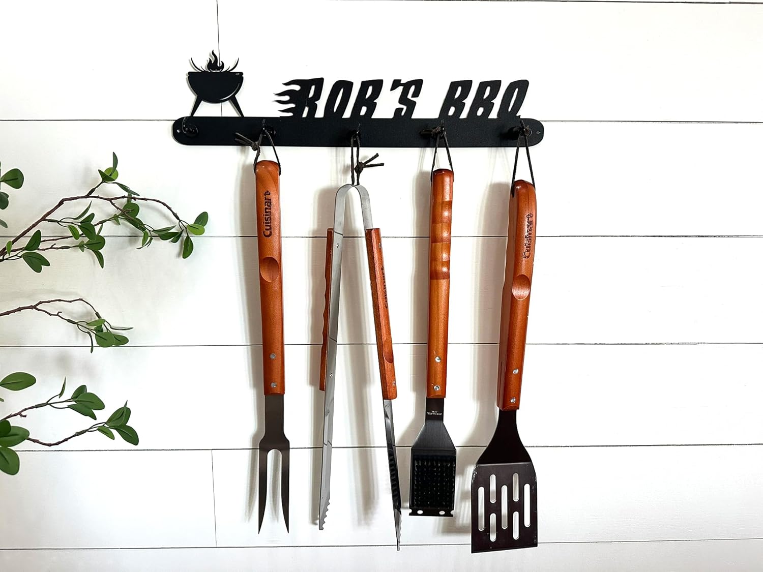 Grill Utensil Holder Personalized – Custom Metal Grill Tool Organizer for Outdoor Cooking, BBQ Accessory Storage Rack with Hooks for Utensils, Durable Wall-Mounted Tool Holder