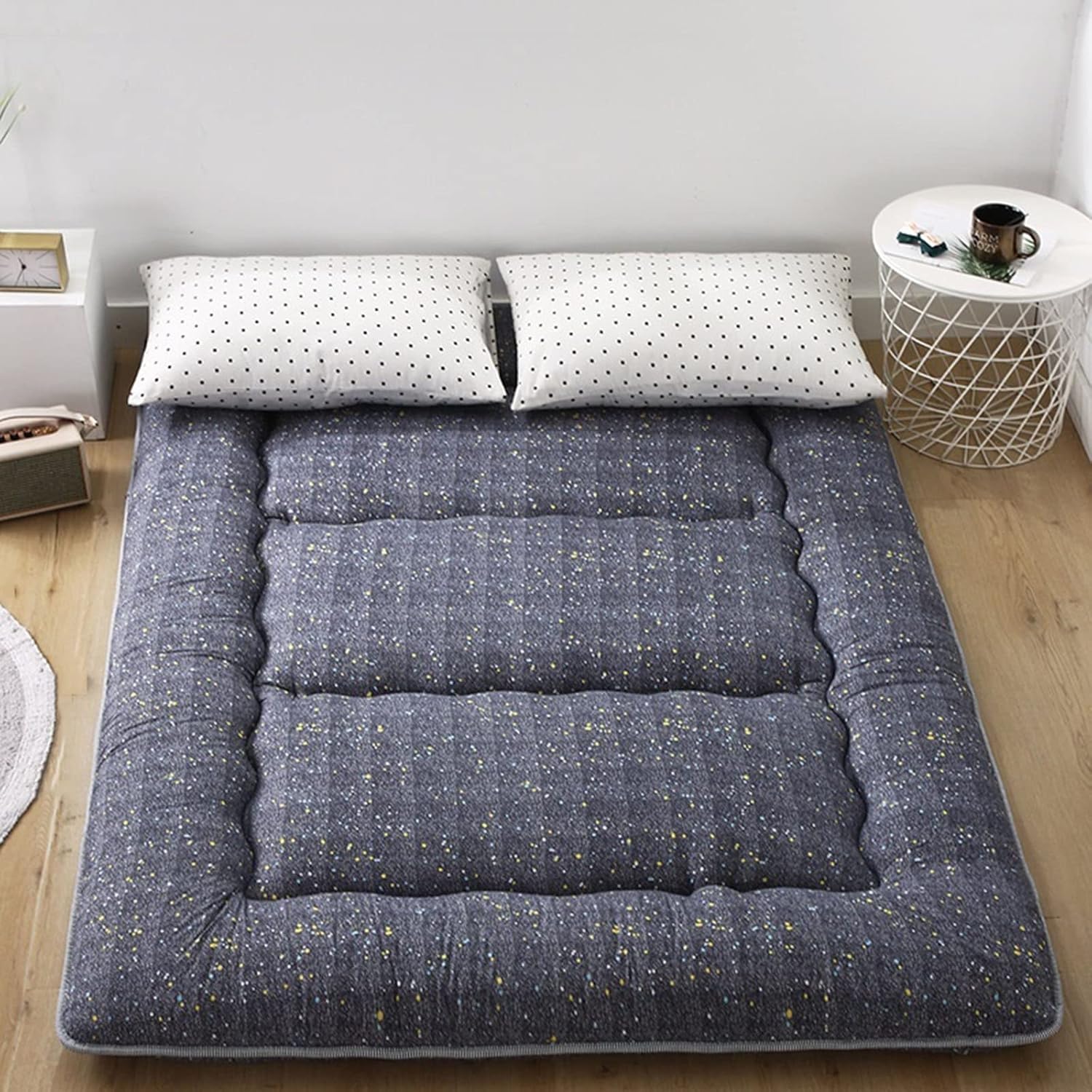 WIDE VERSATILITY: It can be used as Camping Mattress/Bedroom Futon/Living Room Futon/Tatami Mat/Floor Mattress/Sleeping Floor mat/Tent Mat/Guest Mattress/Japanese Bed Mat, also can be kids play mat/floor pillow bed, also bring it with you in your car when going to anywhereFiller:PolyesterFabrics:PolyesterSuitable: suitable for all seasons1. Futon Mattress Is Ergonomically Designed To Distribute Your Weight Evenly,Reducing The Pressure On Shoulders,Hips And Feet,While At The Same Time Shaping Your Body Perfectly.2.our Tatami Futon Mattress Is Soft And Breathable,Super Comfortable.it Can Be Folded In The Closet And Then Placed On The Floor To Sleep.3.environmental Protection Material Care For Spine To Provide You With Quality Sleep.4.The Matress Is Not Easily deformed; It Is Foldable To Be Stored5.Applicable scene: dormitory, family, hotelPrecautions:1.our Products Use Vacuum Compression.after The Product Is Handed,There Is A Rebound Process That Takes About 3 To 5 Days.after Using For A Period Of Time,It Is Recommended To Put The Mattress Under The Sun To Restore The Thickness Of The Mattress And Extend The Use Time.2.please Allow 1-2cm Differences Due To Manual Measurement.