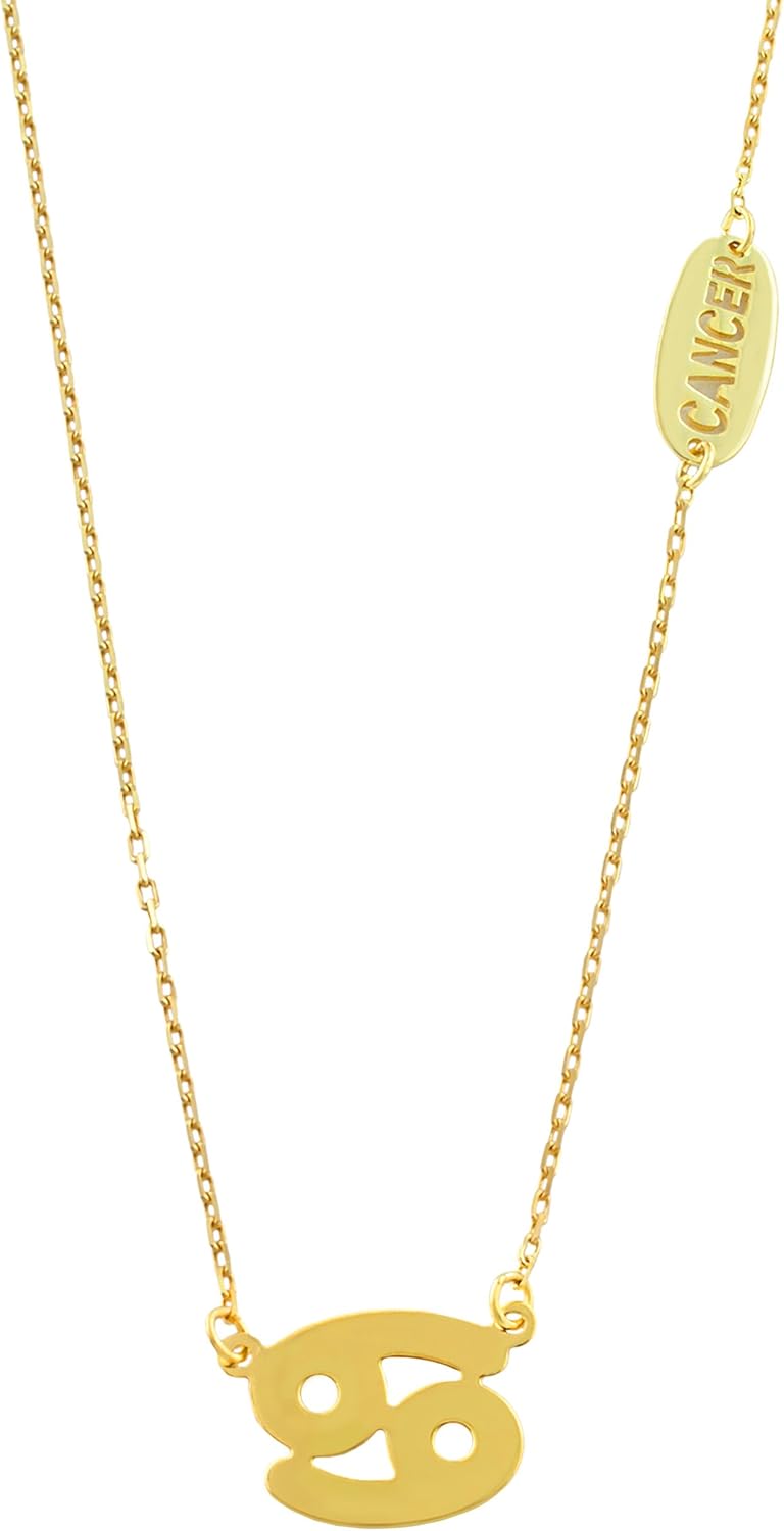 This stylish zodiac sign necklace is beautifully crafted of high quality 10k yellow gold and secures with spring ring closure. A simple, elegant accessory that is perfect for any occasions, this 10k gold zodiac necklace will be an excellent addition to your wardrobe.Gold HistoryKarat Gold has been long sought after through the ages and used as adornment in jewelry, coinage, and the arts. Gold is hypoallergenic and therefore does not rust, tarnish, or corrode. With basic care, gold maintains its look for years to come making it the most luxurious of metals.Gold Jewelry CompositionPure Gold, known as 24k gold, is entirely gold, 24 parts out of 24. Most jewelry however, is made from either 18k, 14k, or 10k gold. Pure gold is alloyed with other metals for added strength and to produce a variety of colors, most commonly yellow, white, and rose. The percentage of gold to its weight plus the alloy is what is referred to as the karat of gold. Higher karat gold jewelry products offer heightened intrinsic value than their lower karat equivalents. Gold Jewelry CareIf treated carefully, gold jewelry can last a lifetime and handed down to future generations. To keep gold shining and scratch-free, avoid contact with harsh chemicals and store in a lined jewelry box or pouch. To clean gold jewelry, use warm water, a mild soap, and a soft bristled brush, if needed.
