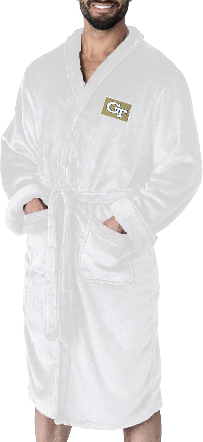 Wrap yourself in comfort and team pride with our NCAA Silk Touch Bathrobe. Made from incredibly silky-soft material, this robe provides a luxurious feel that's perfect for lounging or getting ready in style. It includes two front patch pockets for convenience, along with a tie belt and two belt loops on each side for a customized fit. Show your support for your favorite NCAA team with this officially licensed robe featuring their logo. Whether you're cheering from the couch or getting ready for game day, this robe is the perfect way to display your team spirit.