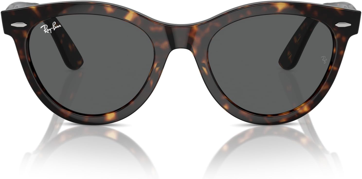The Ray-Ban 0RB2241 Wayfarer Way Sunglasses are modern in design and flatter every face shape! The sunglasses feature a round, yellow havana frame with clear/blue gradient lenses and classic metal front rivets. While the rounded profile adds a new twist to this acetate frame, the striped Havanas playful design takes retro style to the max. These come with a UV-protective coating for ultimate protection during sunny days. Plastic construction. Crystal lens.