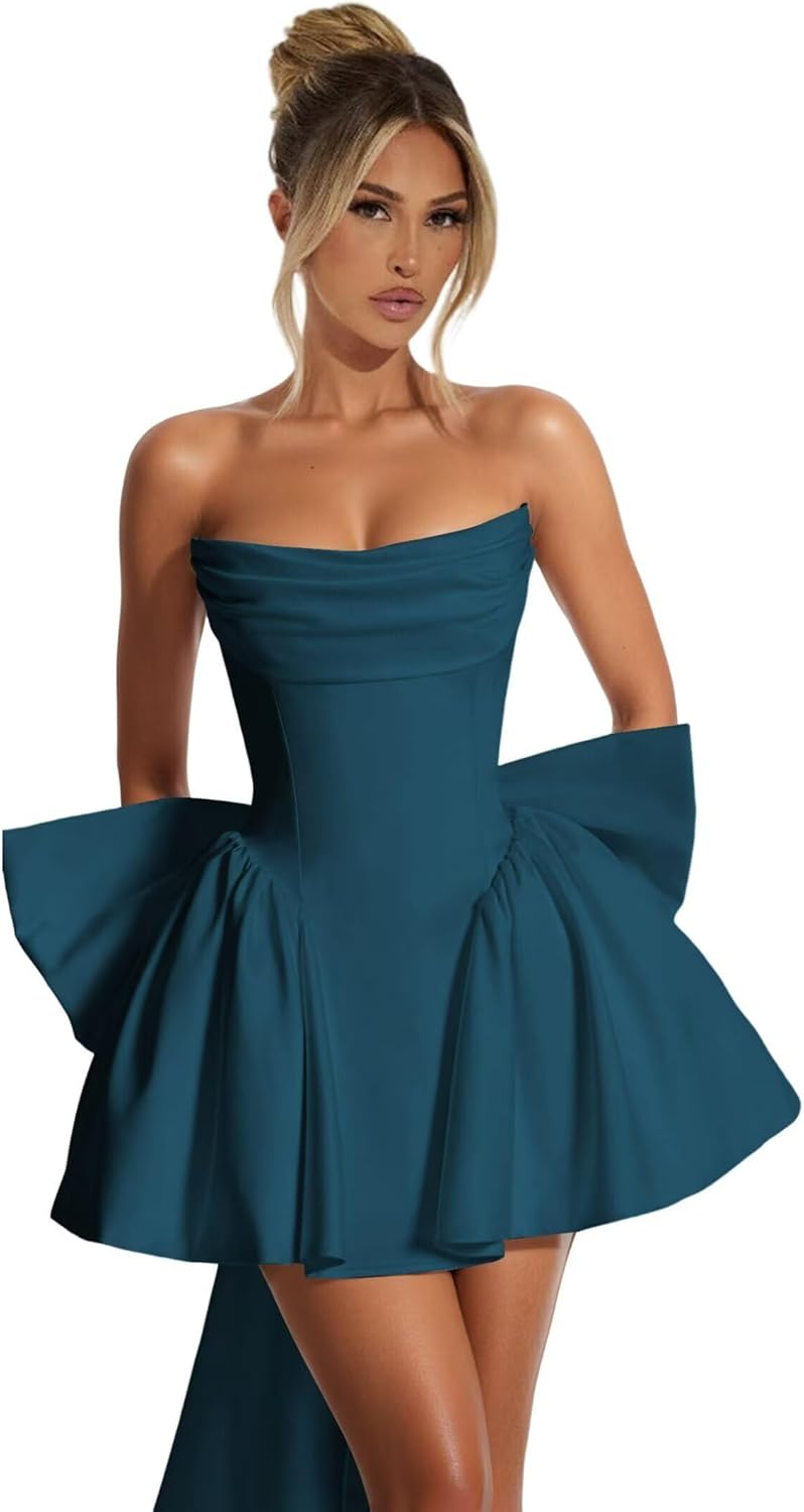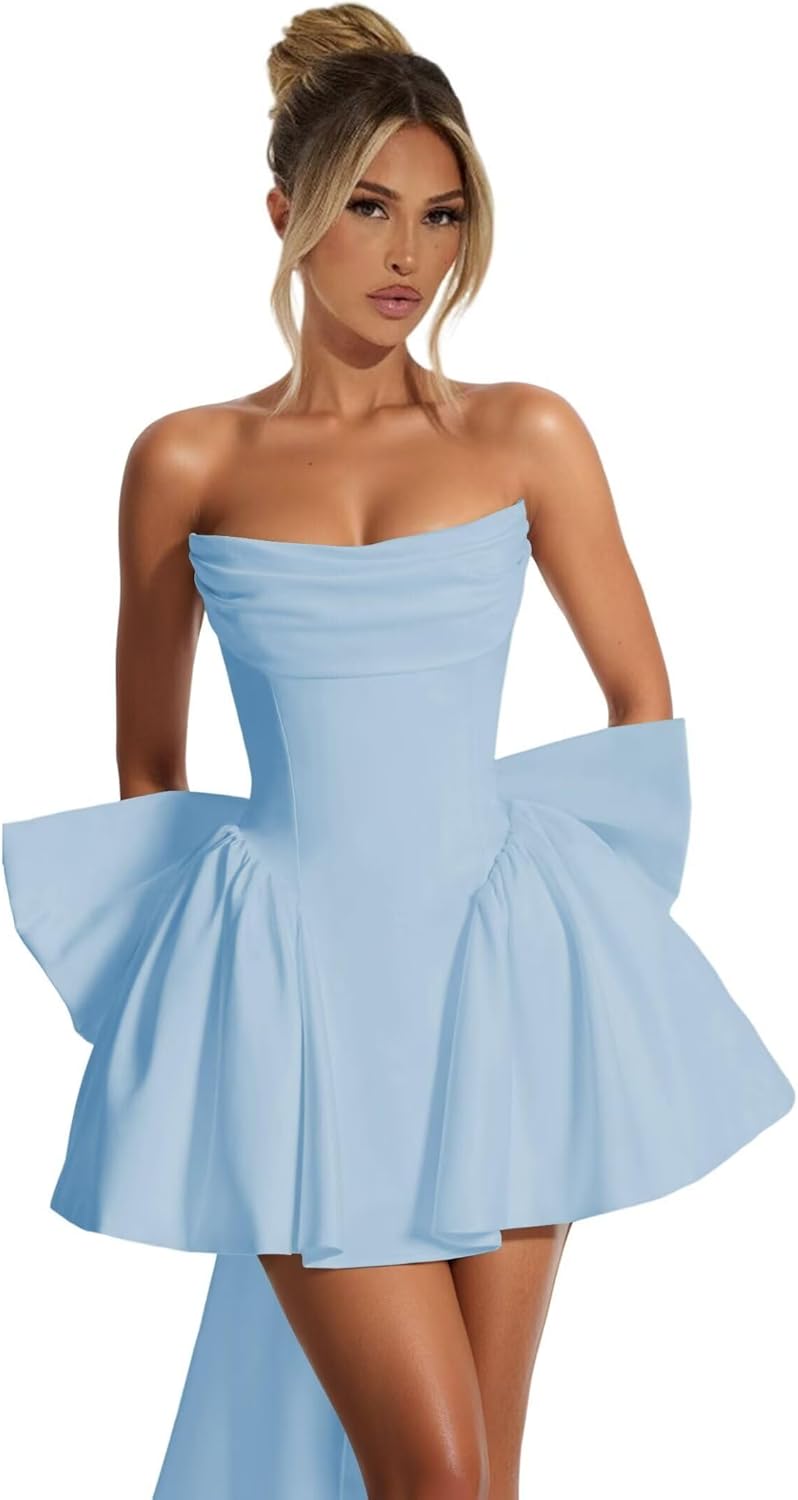 | Item Length Description | Strapless Satin Homecoming Dress with Bow Short Wedding Dress |